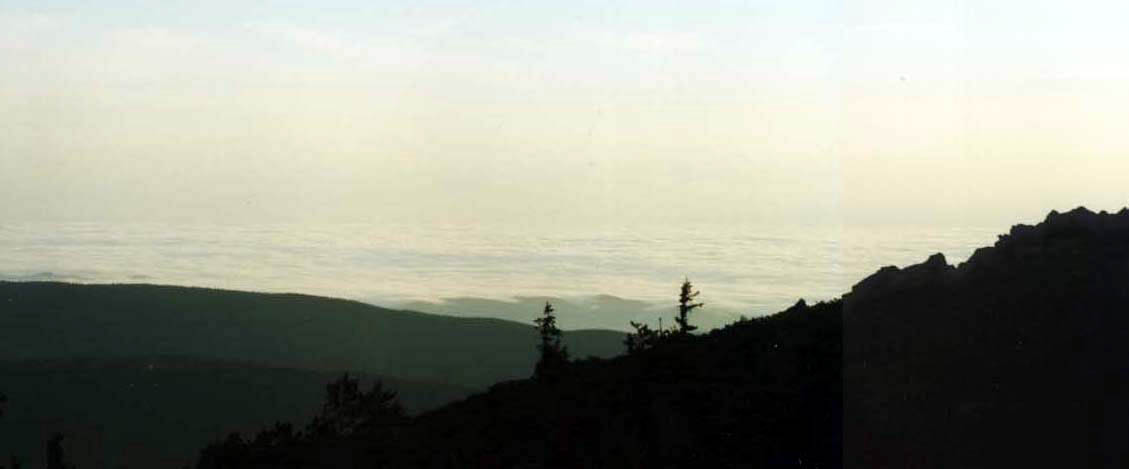 The Front Range covered with clouds.