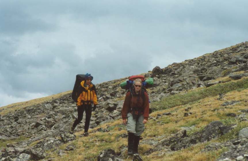 Tricia and Ana traversing the tundra on Comanche's north slope.