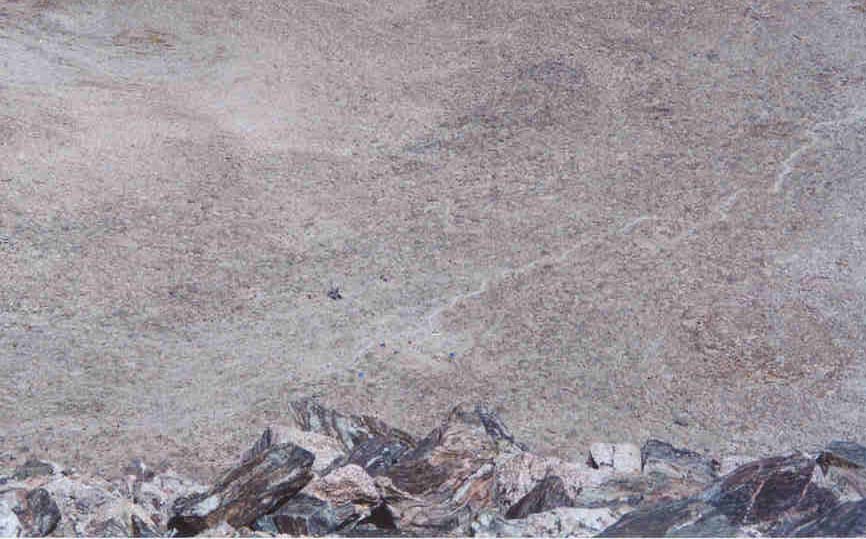 The next hour was not pretty. It involved descending a boulder field for 1000 feet and traversing on narrow ledges in several sections. I kept my distance from those who were frustrated and helped those who wanted my help. Through all this, I was becoming more and more amazed with three members of our group. One was fighting off GI Distress and was still maintaining a positive attitude. One had bad knees which were really hurting by now, and the last was Paul, who moved at turtle speed and was visibly hurting yet kept saying "this is the most beautiful thing I have ever seen in my life. These three became my heroes for the day and kept my spirits up.