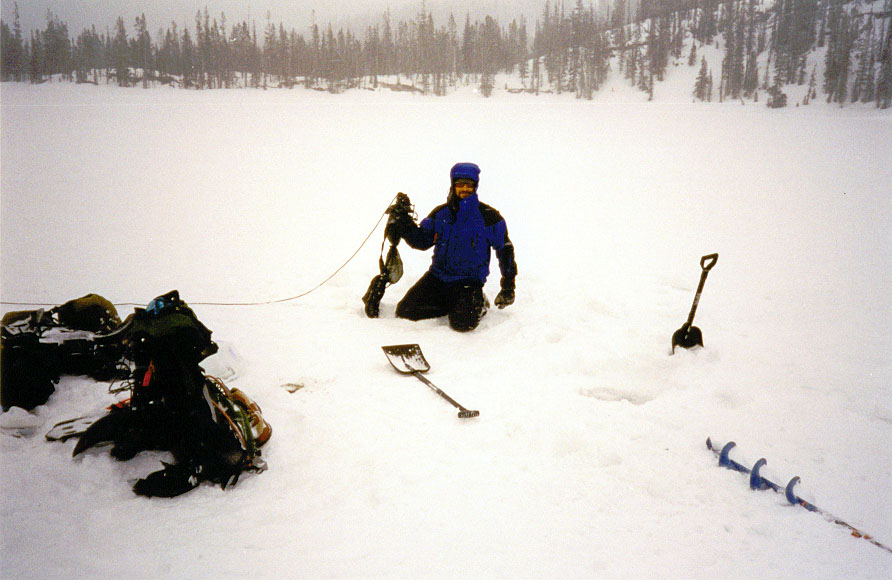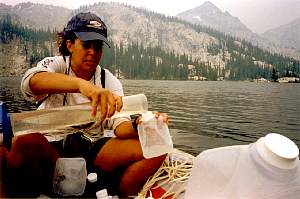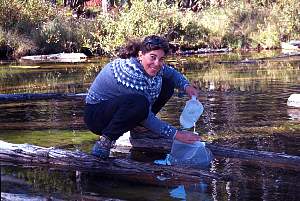 Koren, sampling water from Bull Trout Lake's outflow. |