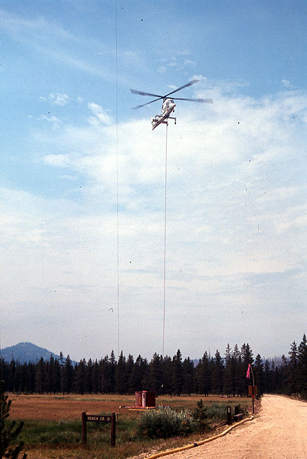 One of the helicopters that was being used to fight forest fires near Bull Trout Lake. We were not allowed to work some days due to fire danger. |