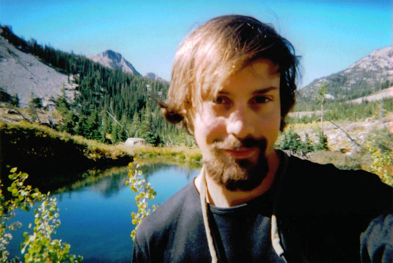 Koren working on Toxaway Lake with smoke from the forest fires clouding the valley. |