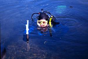 Koren SCUBA diving in Bull Trout Lake. This was a common task for her this summer. |