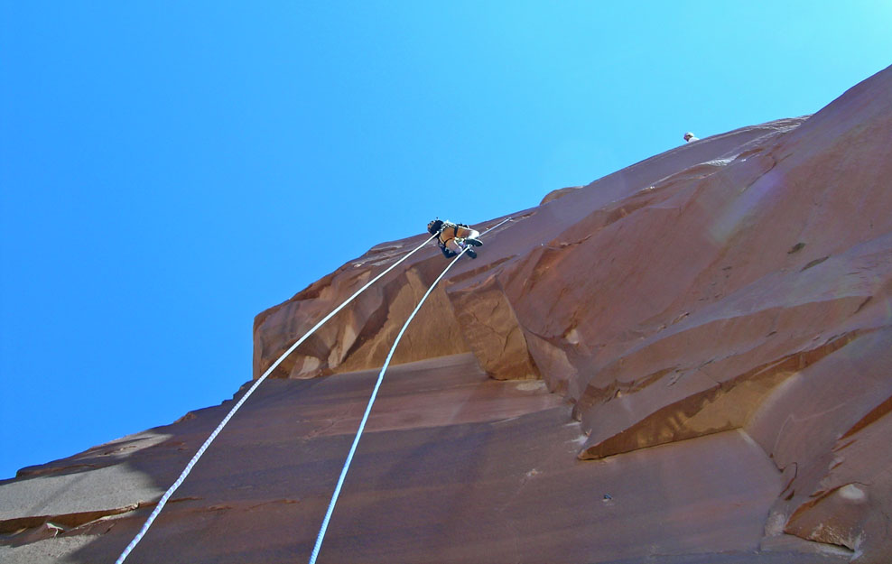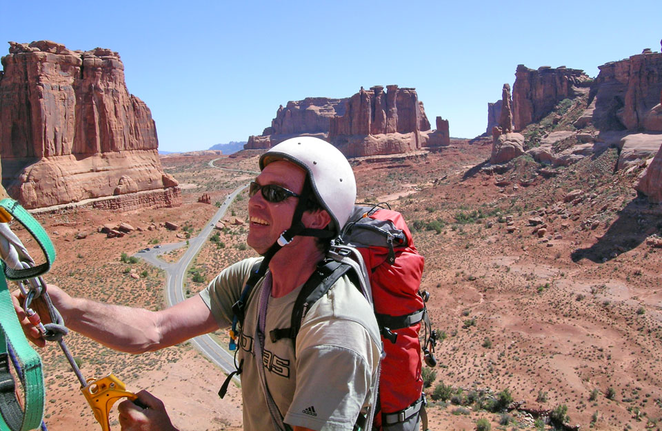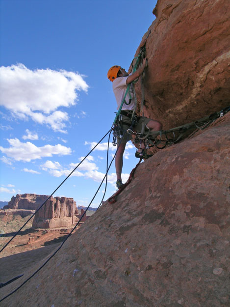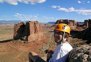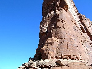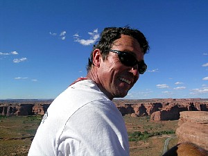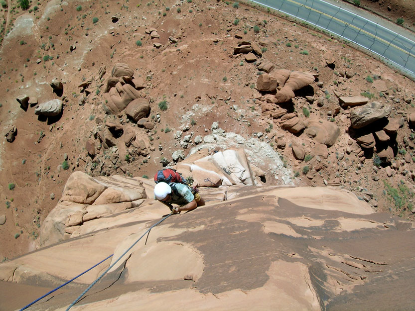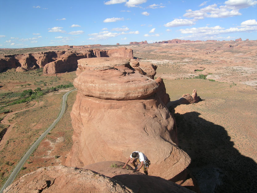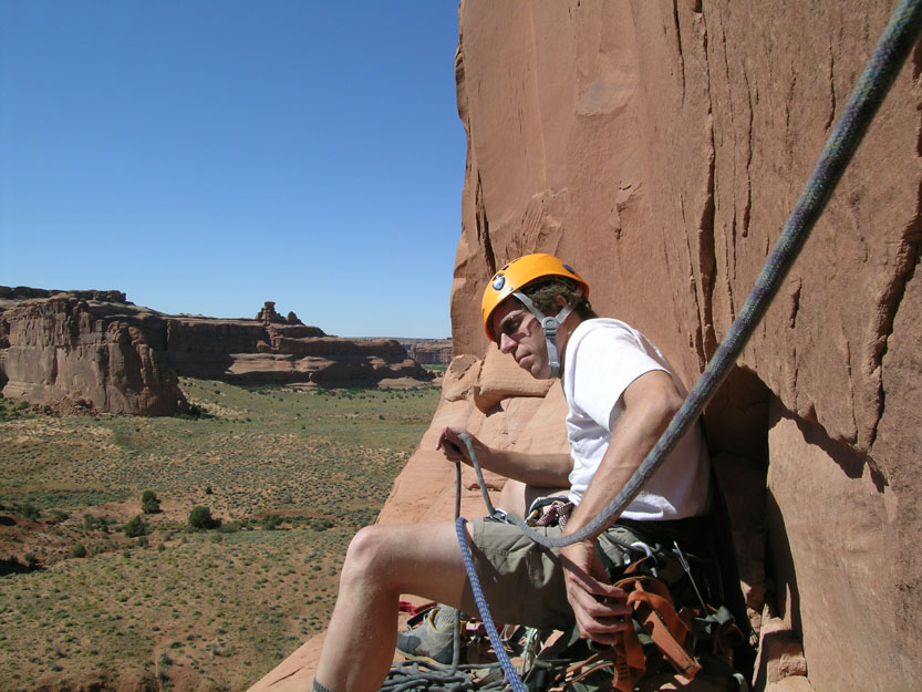 Then it was over and Ian was standing above the final difficulties. He fixed the line and continued unroped to the summit. Pavel and I followed and we all shared a fleeting moment on the summit in the warmth of success, camaraderie and the Moab sun. I was elated. This dream had been with me for years and I had finally achieved it with the help of two of my best friends. For now, my inner demons were sated. All we had to do was get down safely, find the girls, and tell them that we loved them and that were sorry for having inconvenienced them so selfishly.