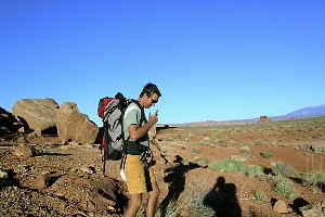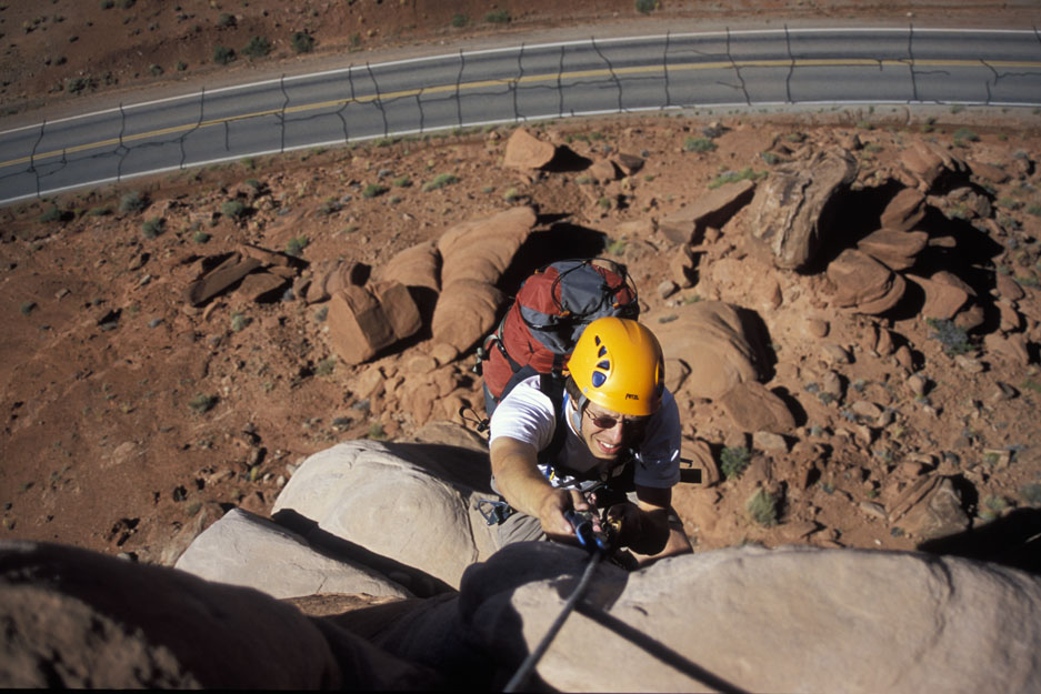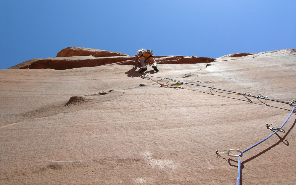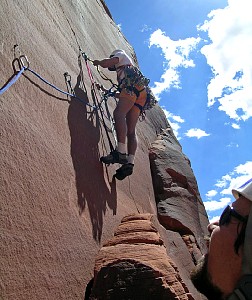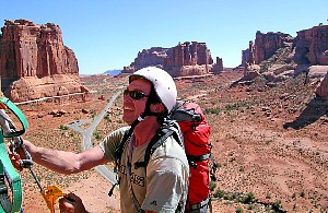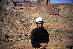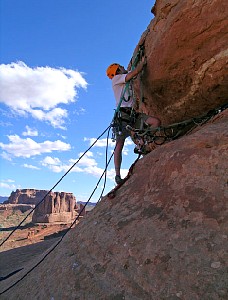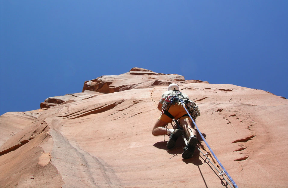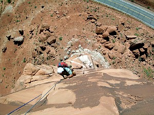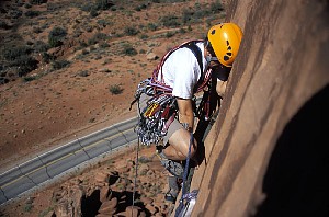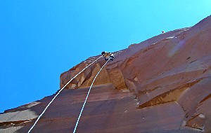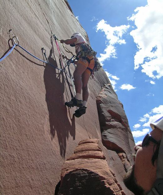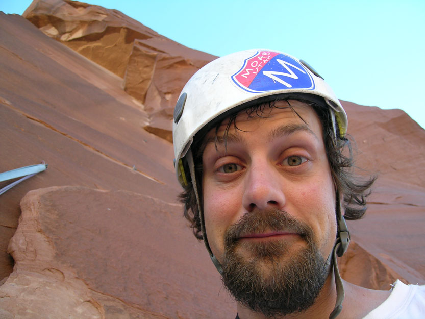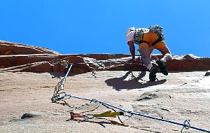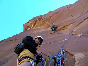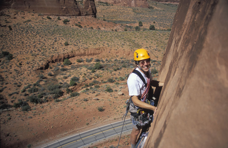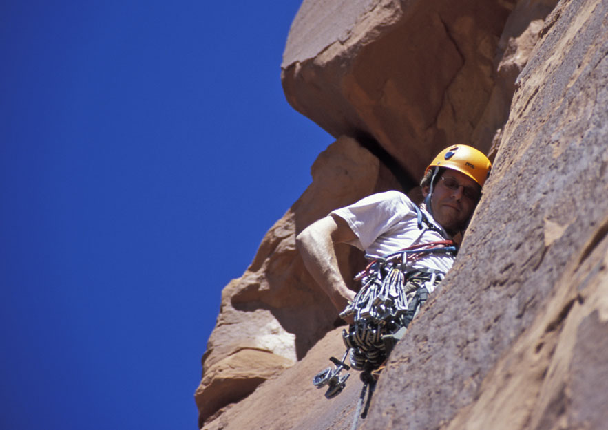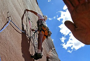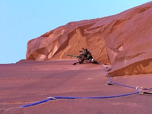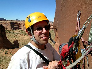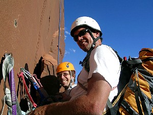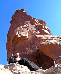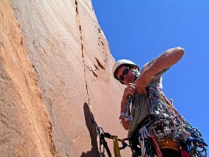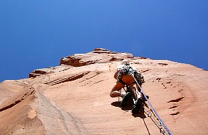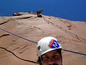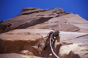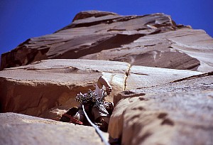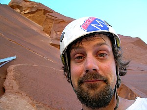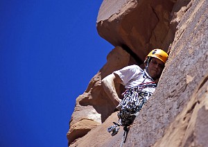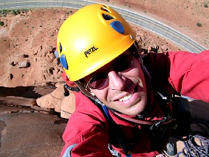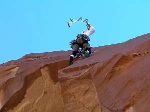 ![]() Ian gives the typical facial expression while leading a desert aid climb. |