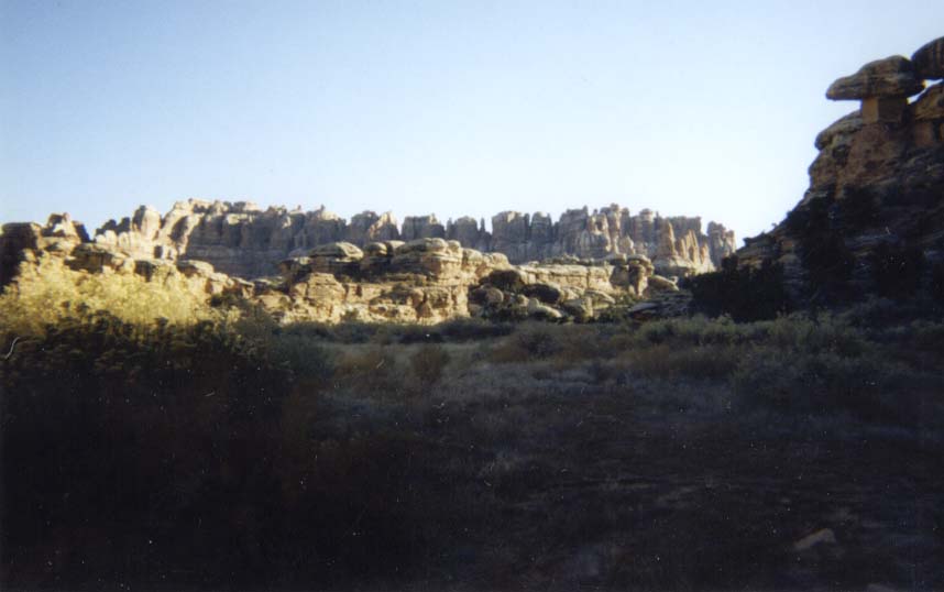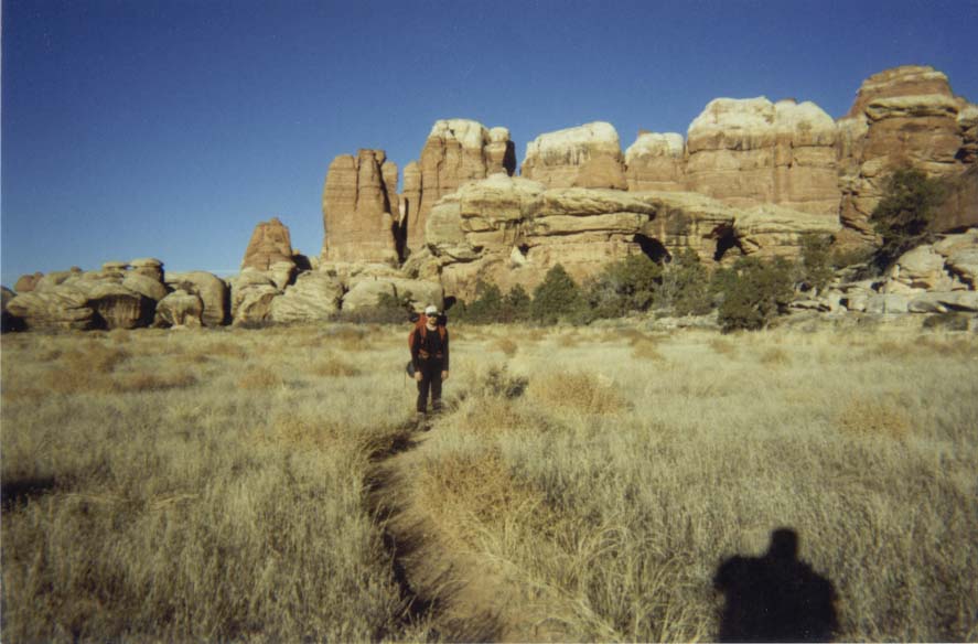 Apporaching the "Needles" in Canyonlands. We camped below