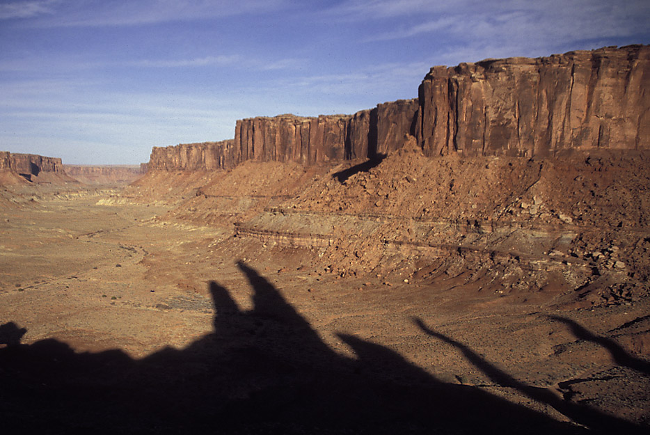 The same crew casting shadows down Taylor Canyon. |