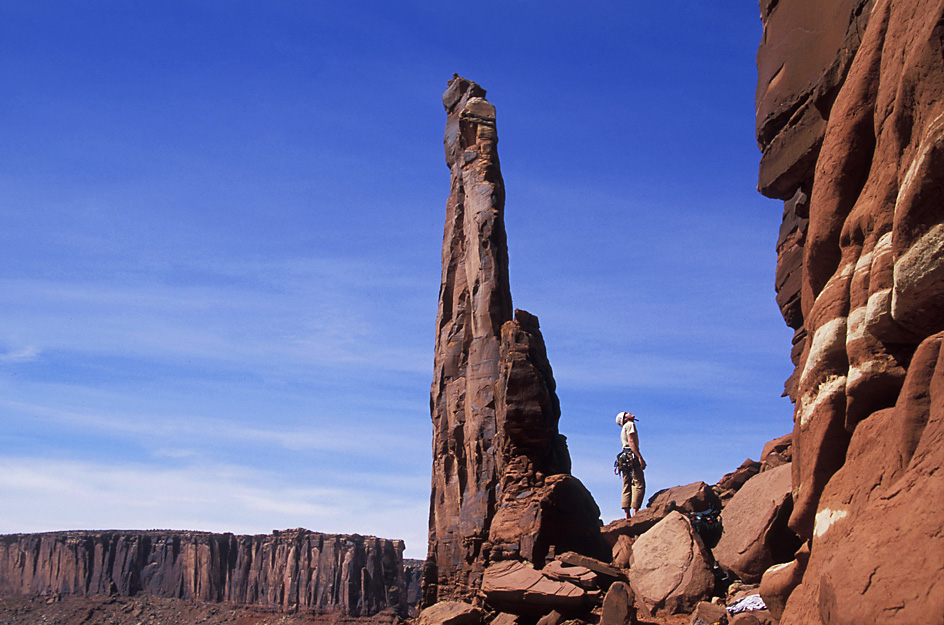 Ten feet up the first pitch I realized that this route was going to be a little more serious then the routes we had done in Valley of the Gods. I was heel hooking on pitch 1 and the first part of pitch 2 which was supposed to go free got aided with black and blue aliens. Things were not going free but they were going, which was all that mattered. I had struggled on the first 2 pitches and was not looking forward to the 3rd. The 3 rd pitch was supposed to have the crux move of the route and if you blew that move you'd hit a ledge. Oh yeah, and you can't aid by it. So up I went and was soon at the crux, the move although not easy was not that hard and the pro although bad was there. On top and belaying Brad up I was already eyeing our next objective.