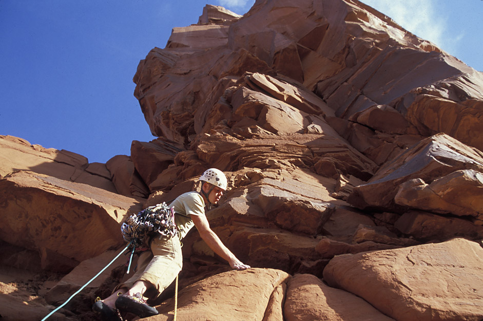 I met Brad at his house on Friday night to load up and drive to Moab . “Babe” the big blue truck got us into Taylor Canyon without to much trouble. The plan was to do Zeus and Aphrodite in one day and then do Charlie Horse Needle the next. Zeus and Aphrodite are right next to each other and are only a handful of pitches a piece so both of them in a day seemed doable.