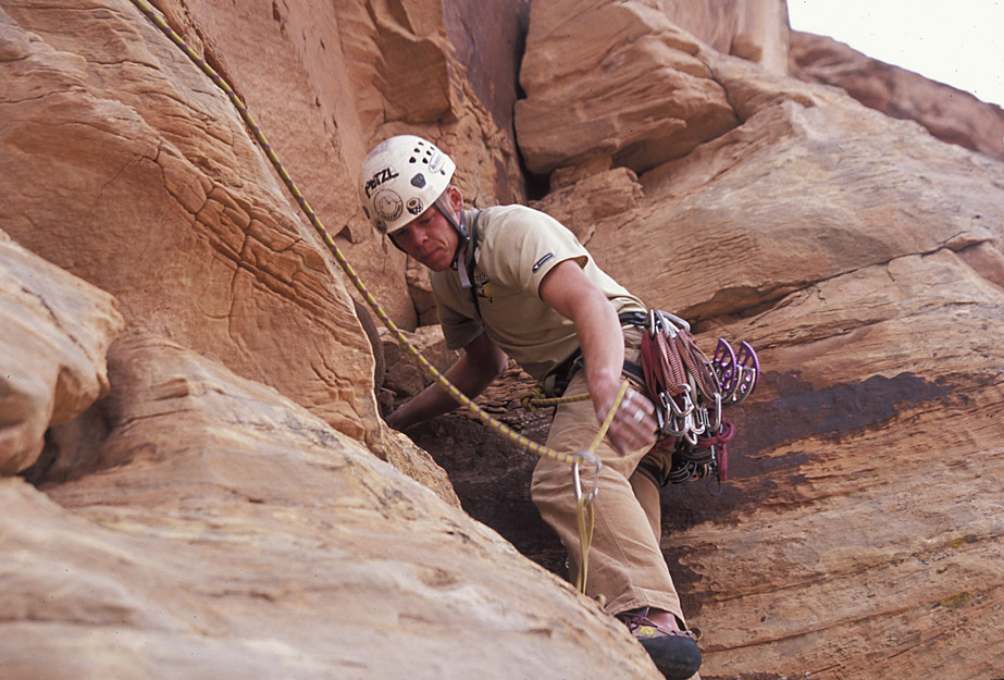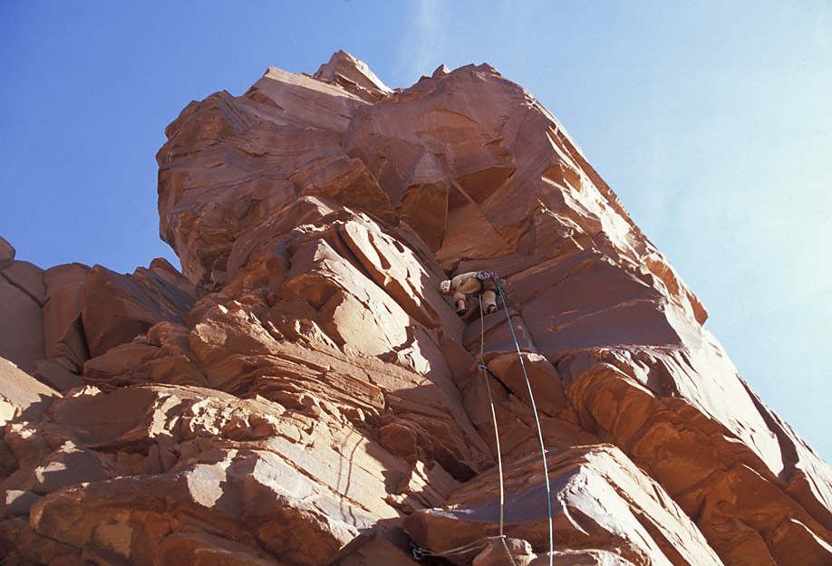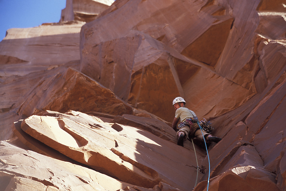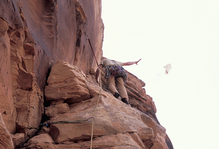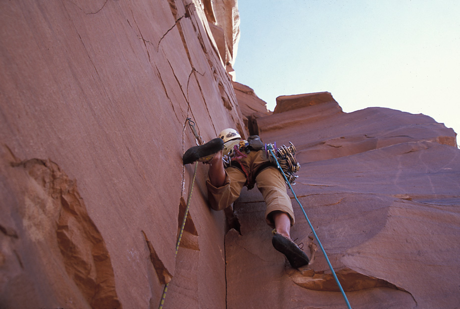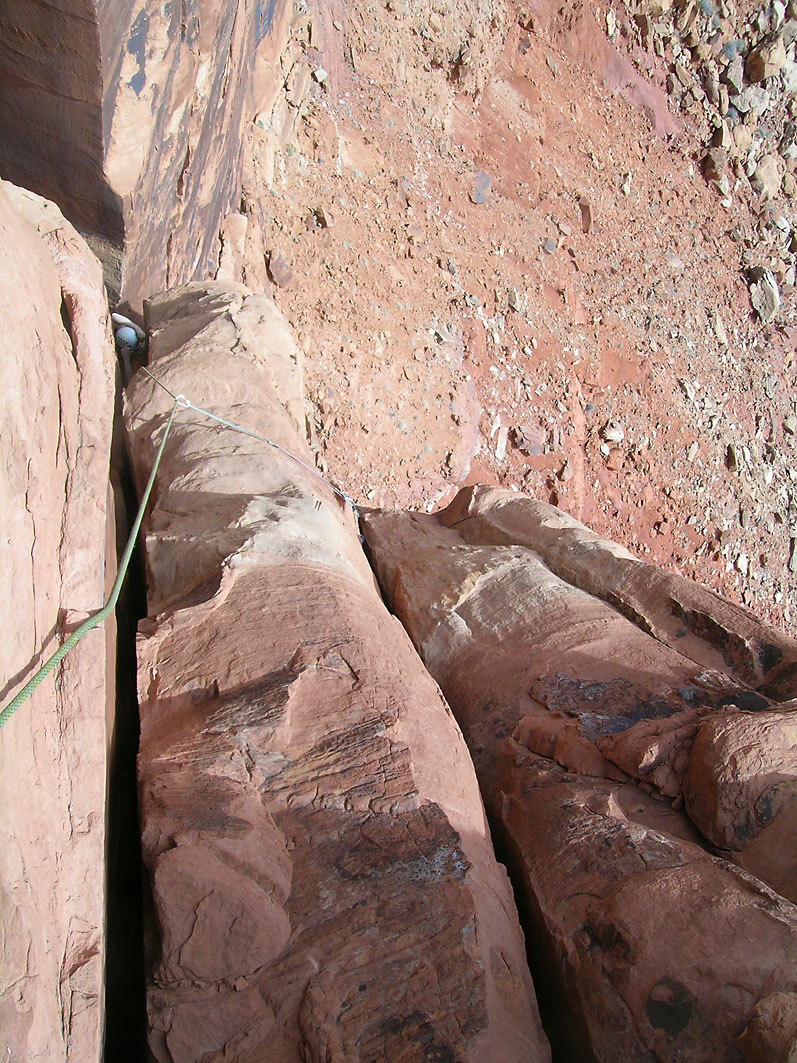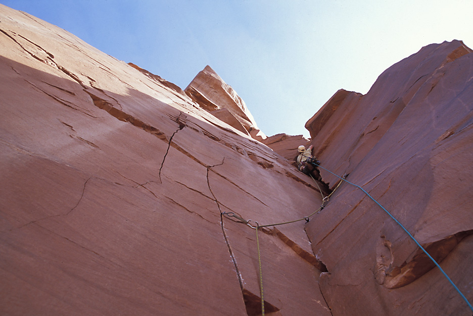 I was a little past where Ben is in the previous shot when I took this picture. The crack our rope follows took us up to The Plank.